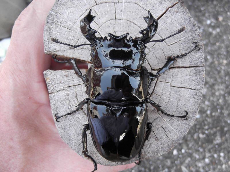 2024年9月6日羽化の後食済み♂単体です。羽化が♂に偏り、ペアにできる♀がいませんので、♂のみです。タランドゥスは長生きですので、お子様のペットや観賞用にいかがでしょう。ツヤツヤ・テカテカのボディがとても魅力的なクワガタです。