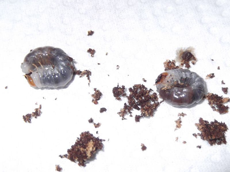 ①幼虫は、割り出し後、無添加発酵マットに入れて管理中。
